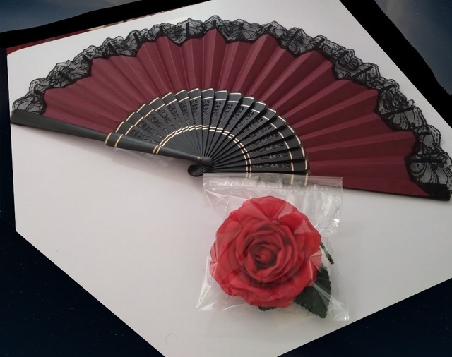 (送料無料)♦️冬映えカラーフラメンコ イベント&レッスン用 アバニコ お花 小物セット(あずきワインカラーアバニコ&赤バラ)