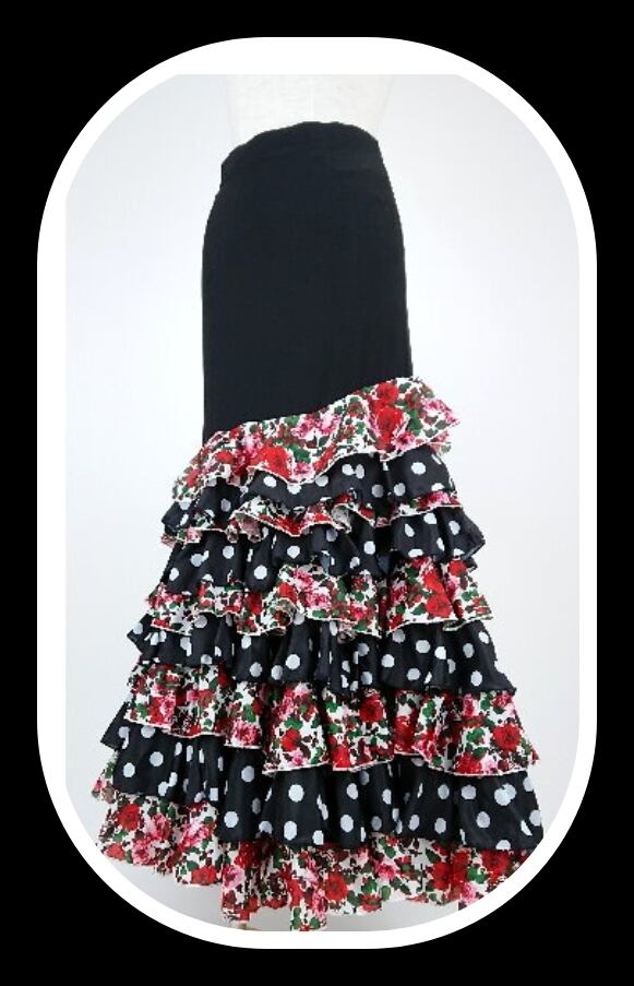 9段フリルの豪華なフラメンコマーメイド花柄水玉ファルダです!