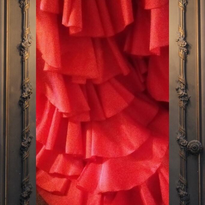 全生地豪華花柄薔薇プリントは大変お高いですがフラメンコにピッタリの華やかバタデコーラが!