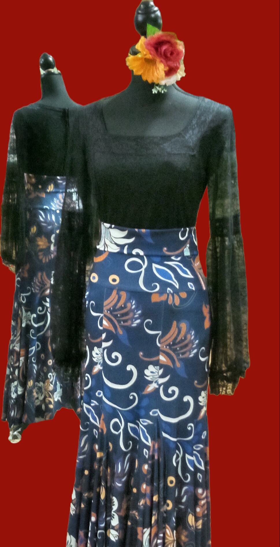 ♥️(スペイン衣装)♥️スペインカラーとてもおしゃれな花デザインスカート綺麗なラインファルダ再入荷致しました。