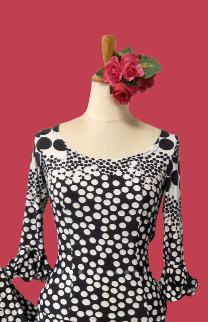 (送料無料)♥️スペイン製フラメンコ衣装♥️1枚で大変便利ストレッチ黒地水玉乱玉ワンピースお買い得特価!!